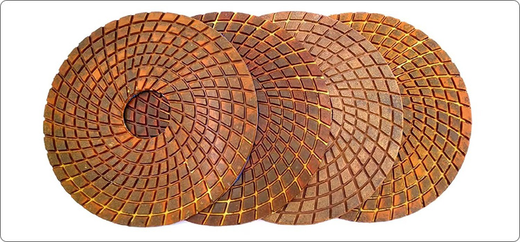 Metal copper & resin bond diamond polishing pads are designed to wet-polish most straight or contoured stone edges. Metal powders are mixed with resin to provide a tighter bond to diamonds.
