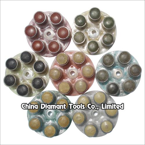 This 6 dots polishing pads are made by high quality resin and diamonds with environmental abrasive materials, which are used for dry or wet polishing concrete, terrazzo, stone floor, they provide good stock removal for effective closure at each grit level, dry working could be get better performance with glossy finish and long working life.