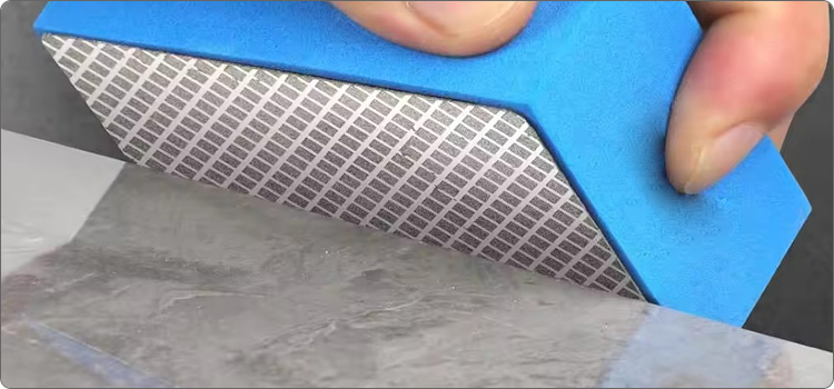 This type electroplated diamond hand polishing pads foam-backed sanding blocks with prismatic design are used for hand polishing job or recovering scratches on a wide range of materials, they are ideal for polishing granite, marble, ceramic, porcelain, engineered stone, concrete, terrazzo, metal, glass etc., especially useful when polish hard to reach areas.