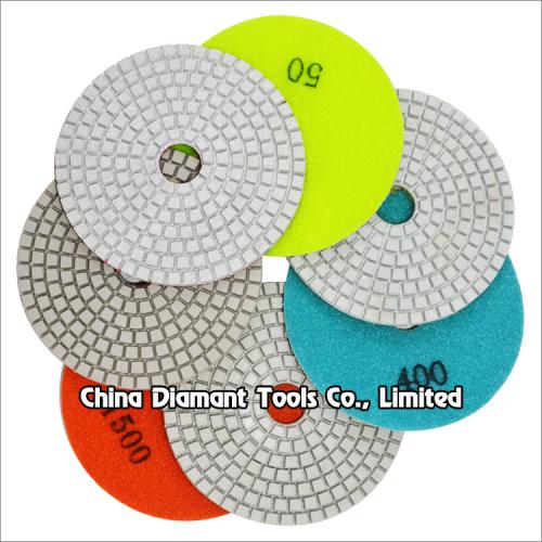 This white flexible resin bond diamond polishing pads 8pcs set for wet polishing of stone contoured and straight edges, which is usually used for polishing light color or white color stones with high glossy degree and long working life.