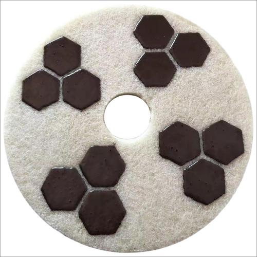 This hexagon shape resin bond diamond fiber burnishing polishing sponge pad is for floor restoration professional, mainly used for portable floor polishing machines to polish the surface of concrete, terrazzo, stone floor, wet or dry use, dry working could be get better performance with high gloss finish in short time.