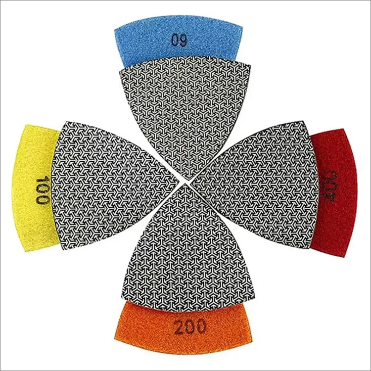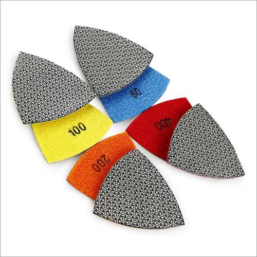 The triangular diamond polishing pads are used for FEIN MultiMaster type oscillation tools for edge trimming and deburring of stone granite marble concrete rock panels ceramic tiles glass and other rough surface manual grinding or polishing. They can be used for wet or dry, also suitable for Dremel Multi-Max, Makita, Bosch, Rockwell SoniCrafter, as well as Ryobi detail.